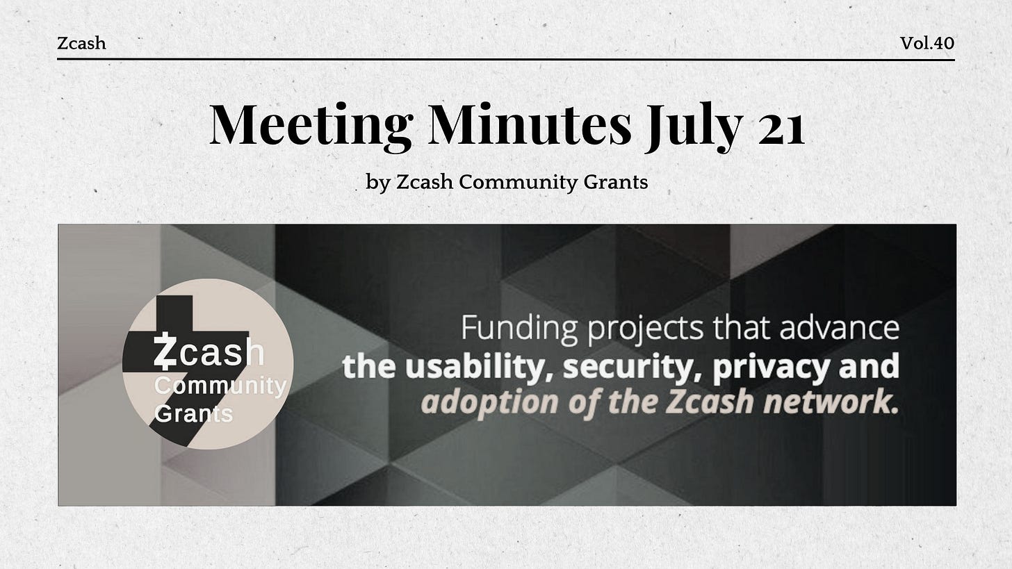 Shielded ZEC on Metamask, ECC Roadmap for 25/26 + Zcash Protocol Roadmap, ZCG Meeting Minutes July 21, NU6.1: Coinholder-Directed Retroactive Grants Program, The Climb: Zcash Update from ECC