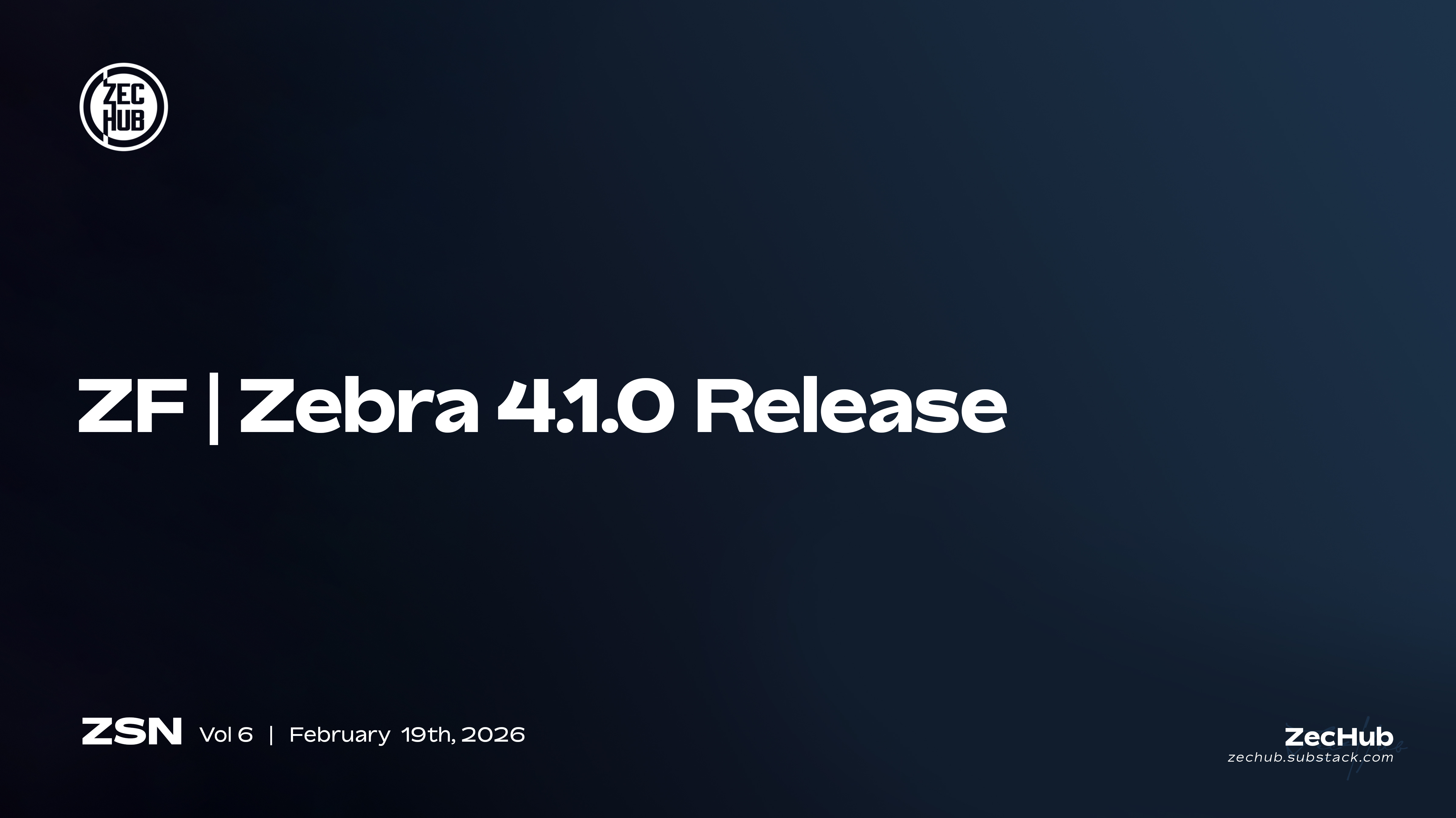 On the node side, Zebra work continues with performance improvements and coordination to meet requirements from exchanges and API providers. Zebra 4.1.0 was also released in response to issues raised by the Zallet developers, helping move wallet-side work forward.