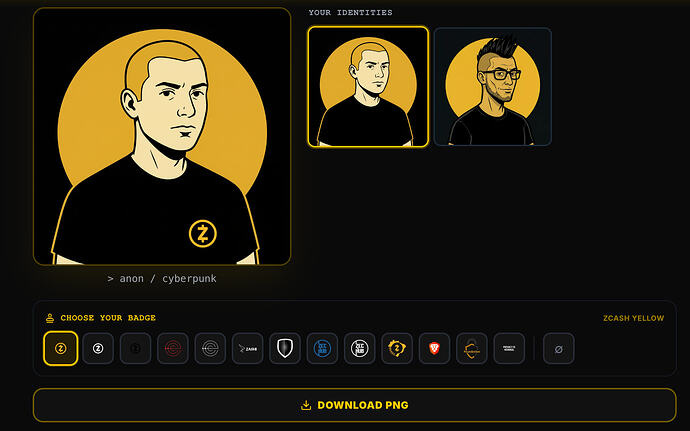 The tool is live as a free web generator that creates AI-made profile pictures and places an official ecosystem badge on top, without collecting user data. The results follow a recognizable visual template (dark background, the Zcash-yellow halo, and a character in a t-shirt), which keeps things unified across the ecosystem while still letting each person show a bit of their own vibe.